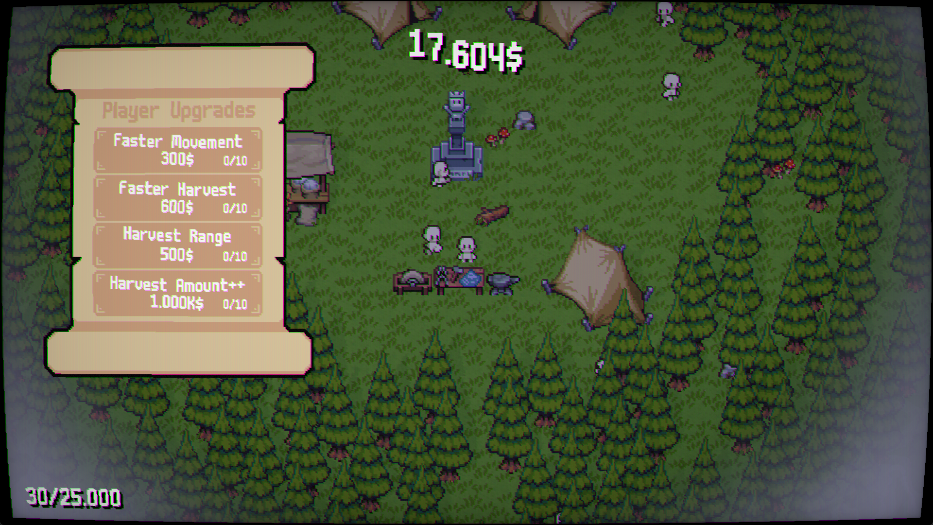 A top down incremental game about harvesting resources from an eternal forest. Prepare for the woods with items and upgrade your character and helpers. Try to fight off the trees by chopping them. How long can you stay in the forest?